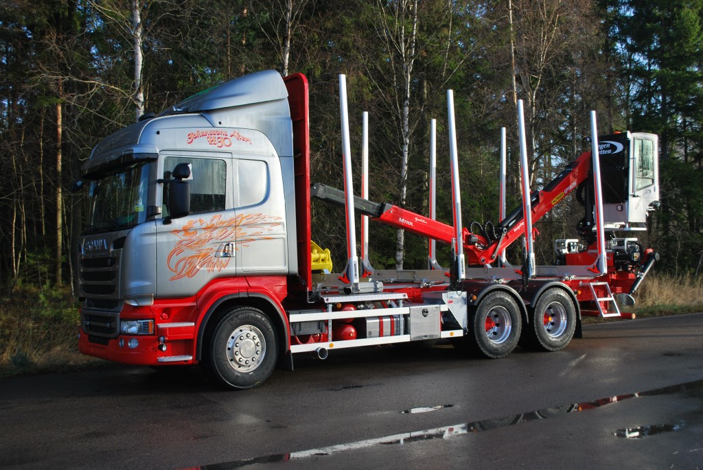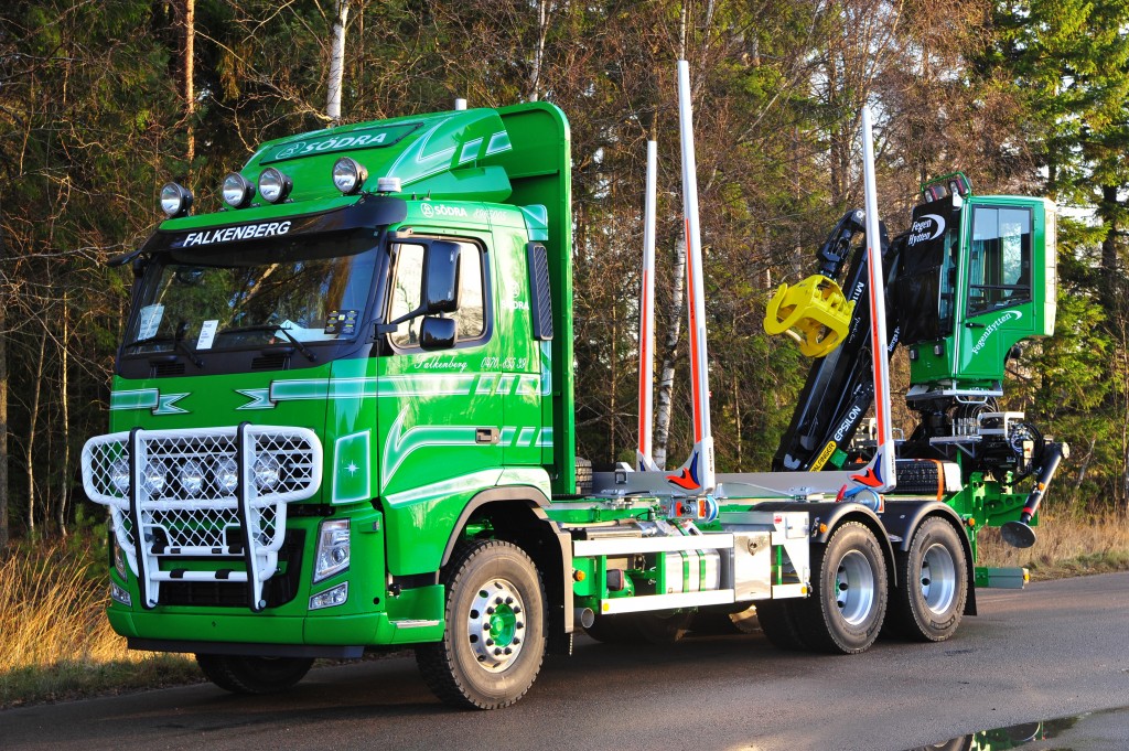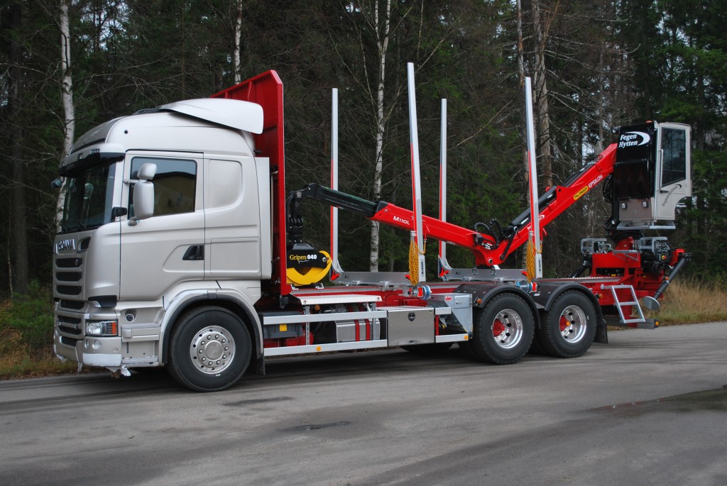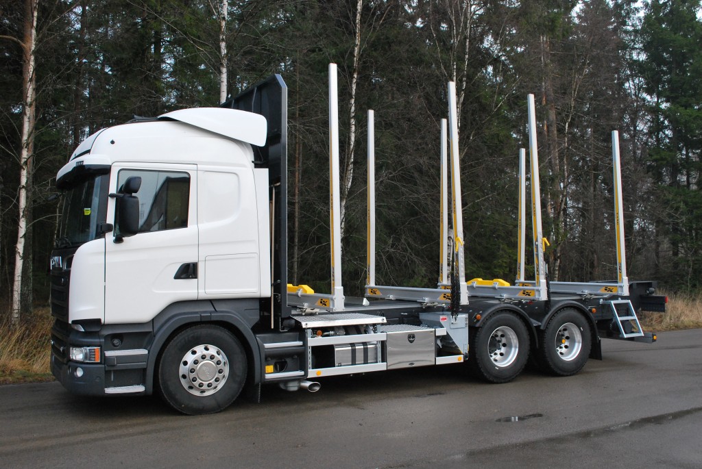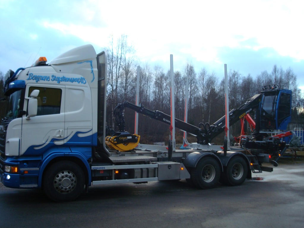 Lättviktsrede med helsvetsad TL-profil i höghållfast stålLättviktsframstamBergs avställare komplettVerktygslådaBergs stödbankeDrag VBG 795PA, dragbalk, gavelsats & alu. underkörningsskyddHydraulpump Parker VP1-130Hydraultank 225L aluminiumOljekylAxeltrycksfördelareSlir-ej Epsilon M110Z med centrumplacerad stolpe= (hopvikt bakom lasten och inget behov att lyfta undan kranen vid trucklossning)Olsbergs PV90 elhydrauliska ventilerElektriskt manöverdon för körning av kran från markenOlsbergs PV91 stödbenspaketGrip Loglift X53Tamtron TimberRostfri Fegenhytten Leveransdatum: 2013-11-29